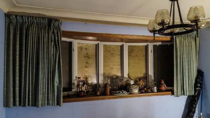 Upstairs you would almost think that a family still lives here if not for the boarded windows and ceiling damage. There was no natural light coming in here at all and unfortunately flash had to be used for most of these photos.