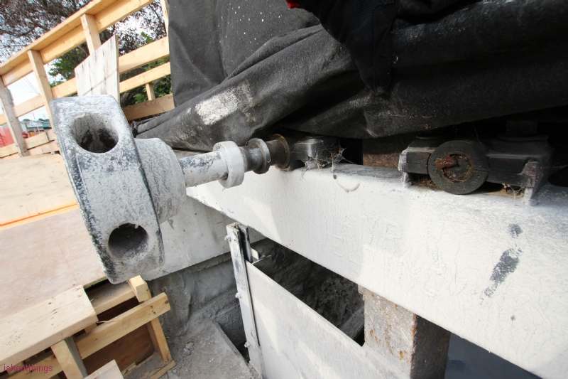 Wheel to raise and lower the gate. Because of the construction, much of it was covered.