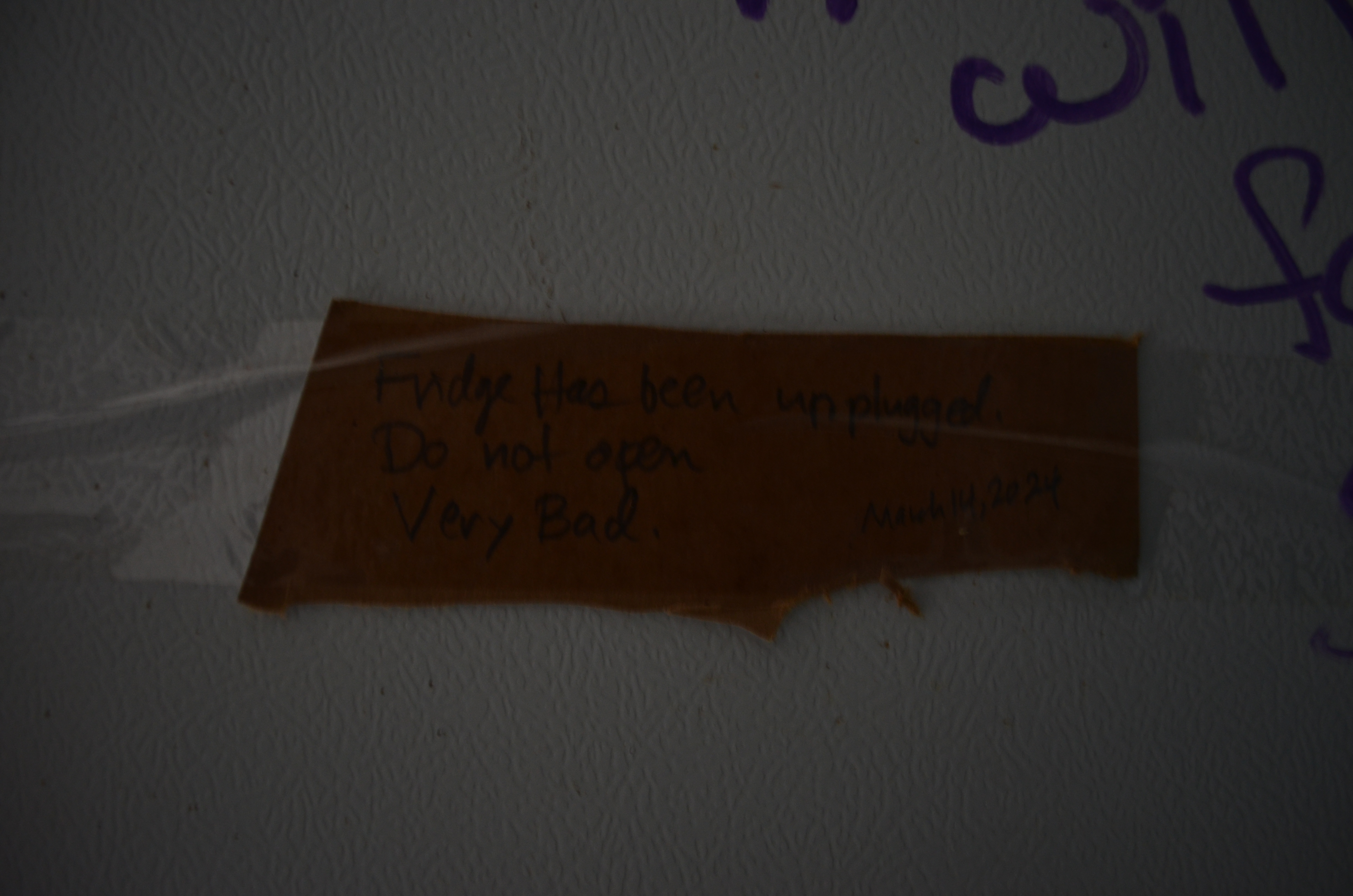 V P Grinding - DSC_0493.JPG ''fridge has been unplugged. do not open . very bad.''